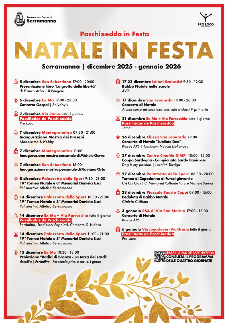 Calendario degli eventi di Natale in Festa e Passilladas de Paschixedda 2025-2026.